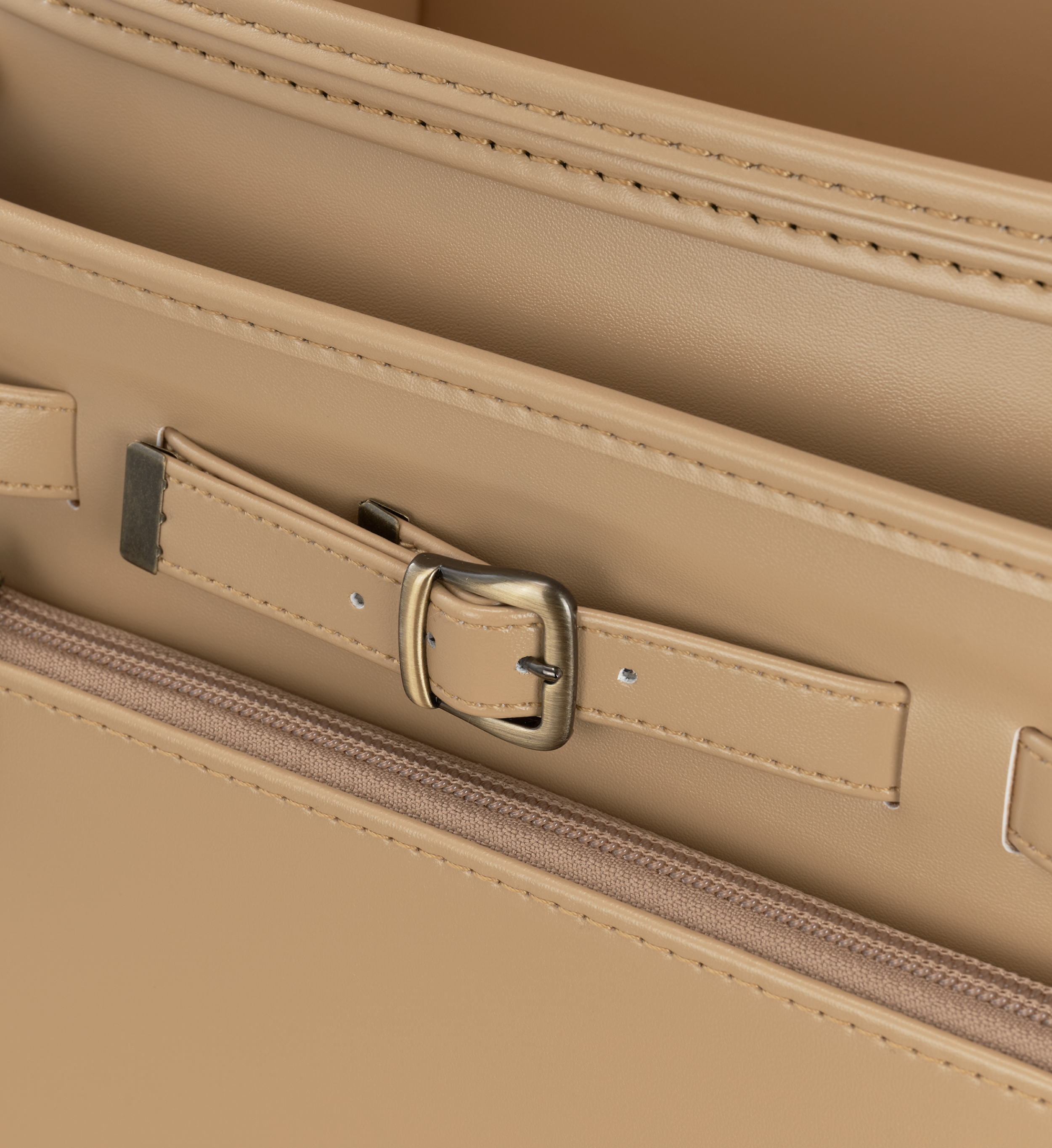 +CELのランドセルは、全モデルがA4フラットファイルのサイズが収納可能です。内寸は12.5cmと、しっかりと容量を確保しています。教科書やタブレットを入れ、さらに水筒や上履き、体操着などを入れる余裕もあって、荷物が多い日でも安心です。たくさんの荷物を入れても型崩れしにくいよう補強されています。