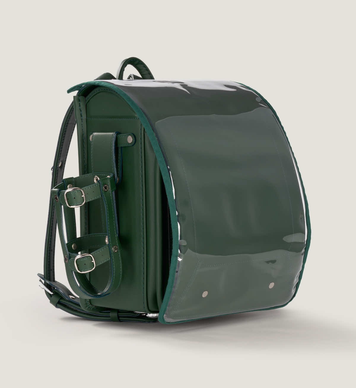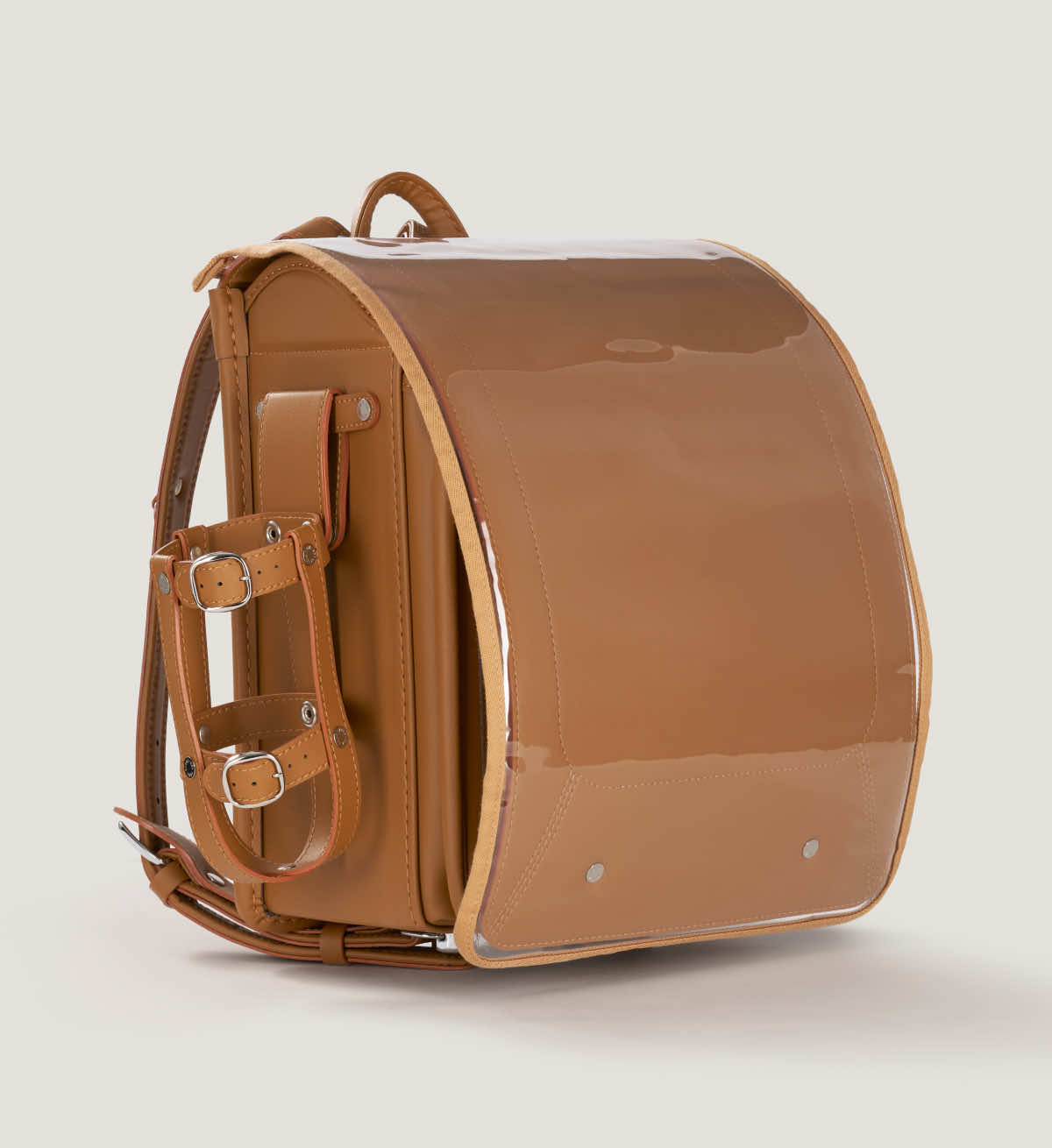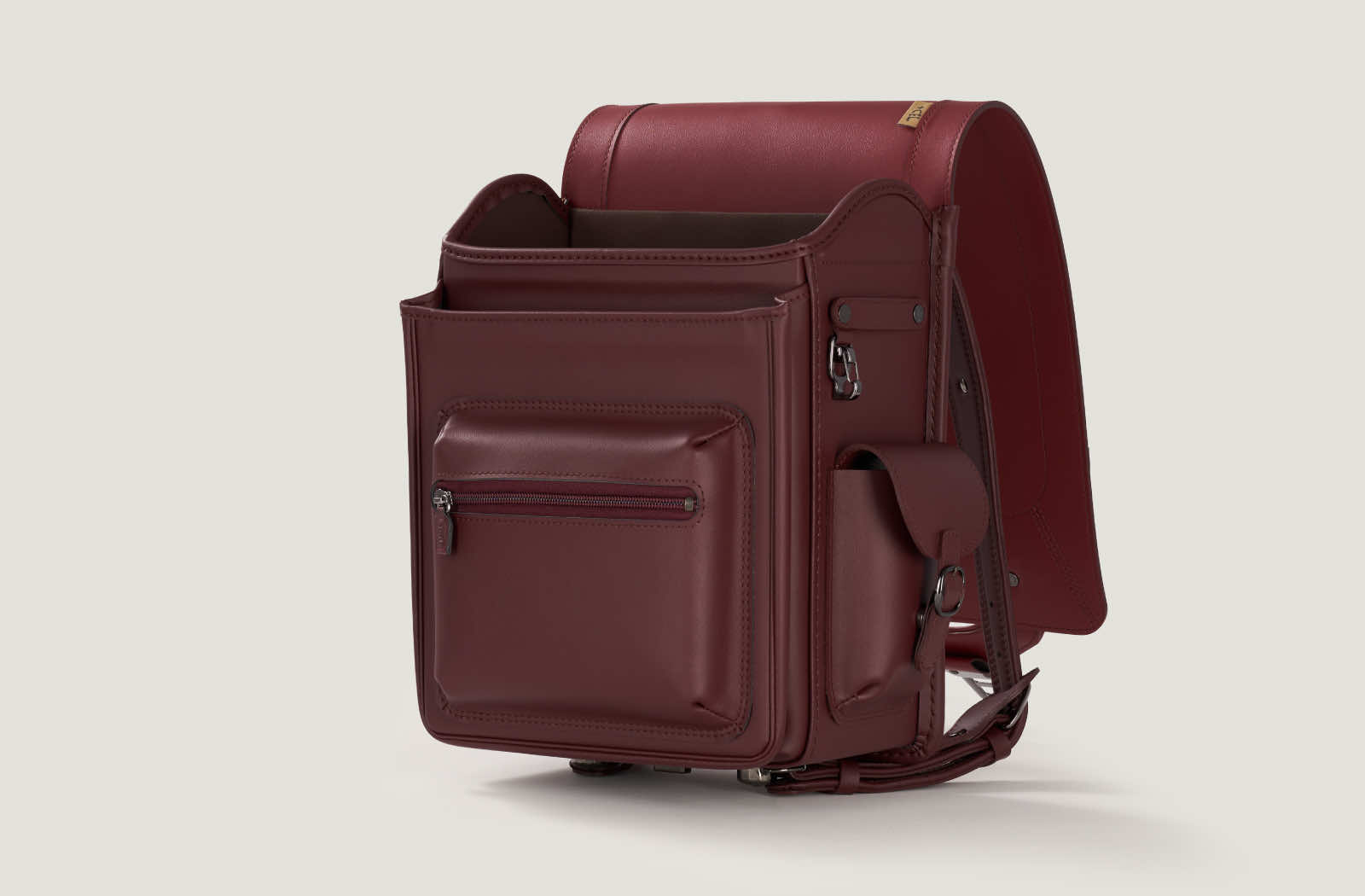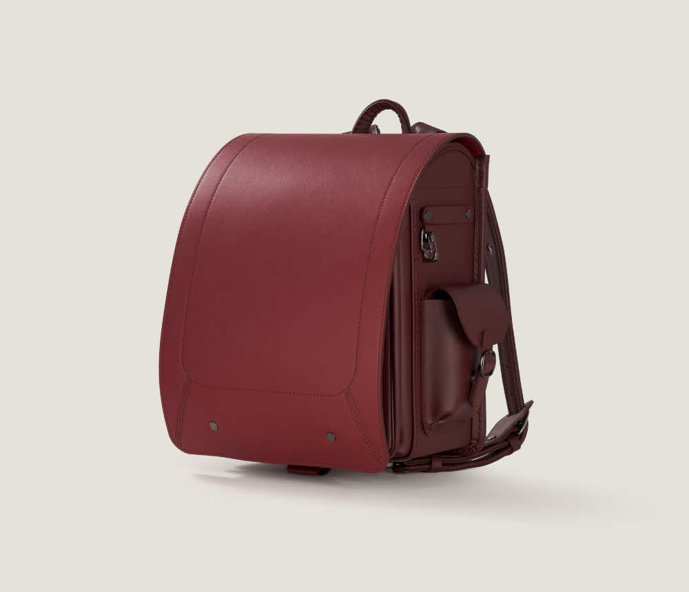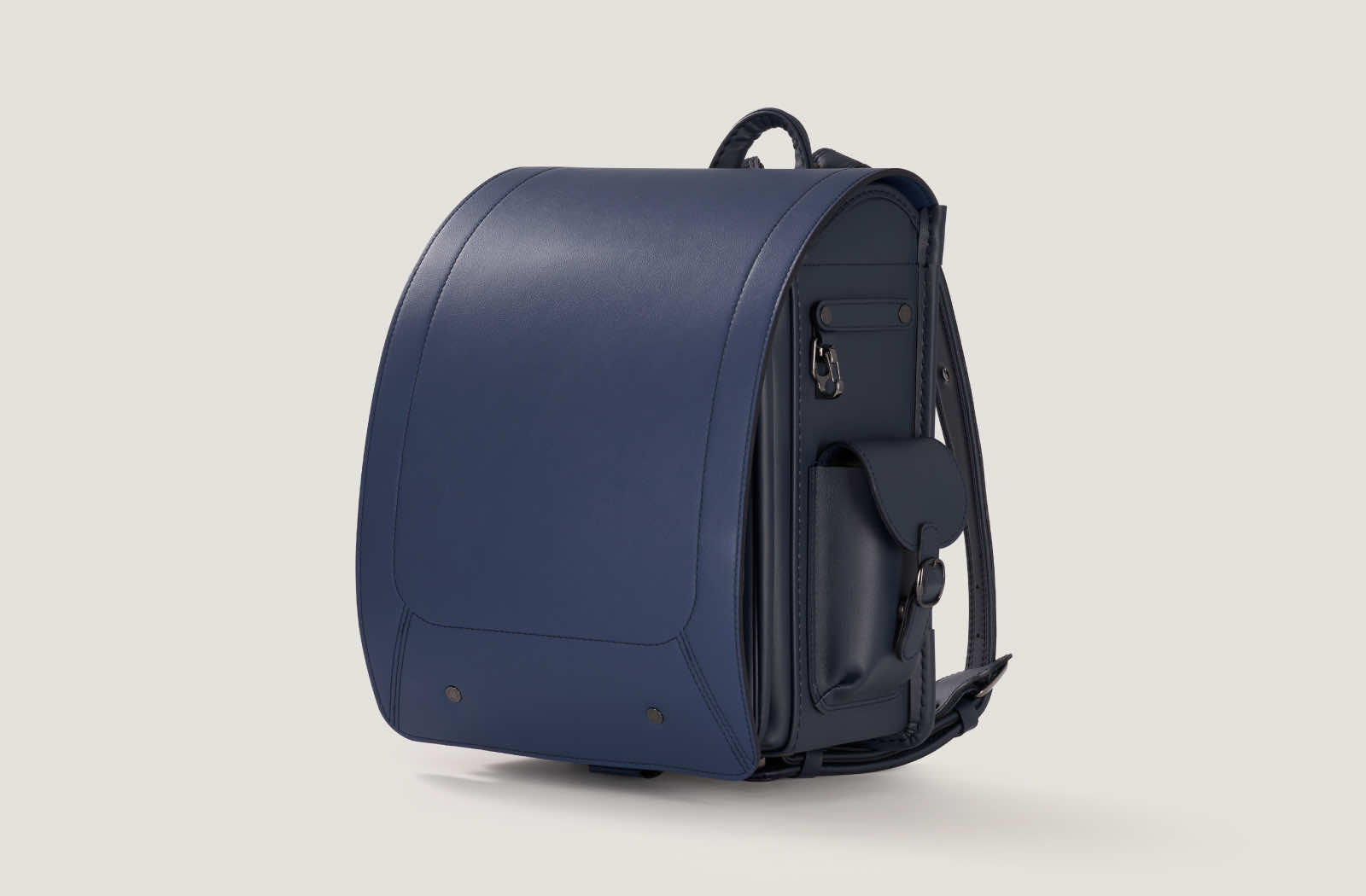 「かぶせ」のあるランドセルらしい形をしていますが、素材を組み合わせた専用のボトルケースをサイドに配するなど、新鮮な印象に仕上げました。デザインを手がけたのは、プロダクトデザイナーの柴田文江さん。人工皮革でありながら切り端を磨き上げるコバ処理を施したり、フロントポケットをマチ付きの立体的な形状にしたり、細部まで徹底した心配りがされています。その佇まいに合わせて、落ちついた6色の展開です。