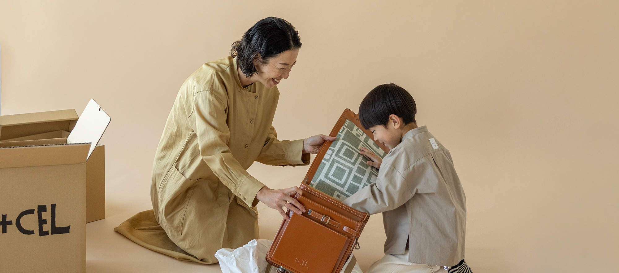 +CELで人気のランドセルをご自宅で背負っていただくことができます。お好きなモデルやカラーをお選びいただき、ご家族で楽しみながらランドセルをお試しください。+CEL HOME STOREや+CEL CARAVAN(展示受注会)へお越しいただくことが難しいご家族にもおすすめです。